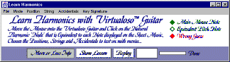 Learning the natural harmonics on the guitar is done with the "Learn Harmonics" mode. (If you'd like to work on perfect pitch with natural harmonics as well, simply minimize the notation window, or move it somewhere on your screen where you can't see it.) You may use any key signature with this testing. Learning the natural harmonics up and down the length of the fretboard completes your mastery of pitch notation.