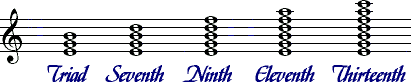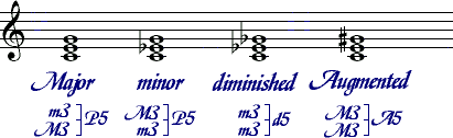 The simplest of the chord types is the triad. The triad consists of three notes separated by two consecutive thirds. There are four types of triads that are commonly used: