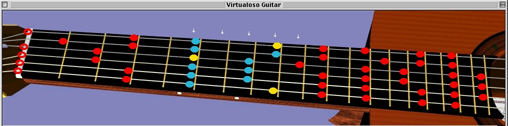Guitar displaying Pentatonic Scale at Position V Screen Dump